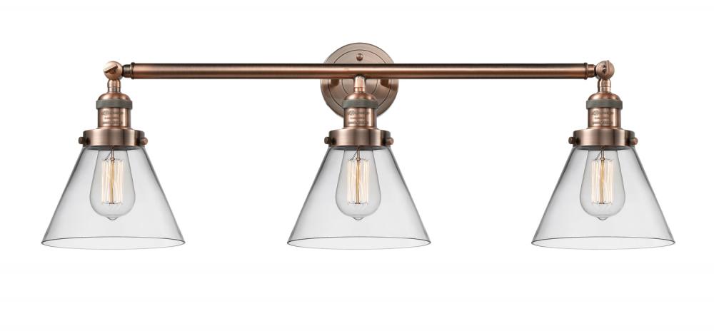 Cone - 3 Light - 32 inch - Antique Copper - Clear Shade - Bath Vanity Light