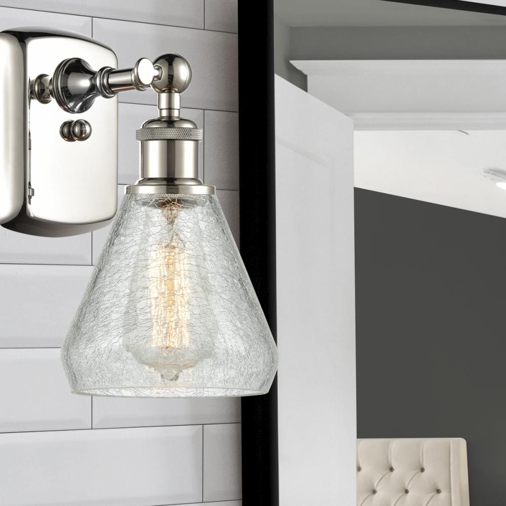 Conesus - 1 Light - 6 inch - Polished Nickel - Clear Crackle Shade - Sconce