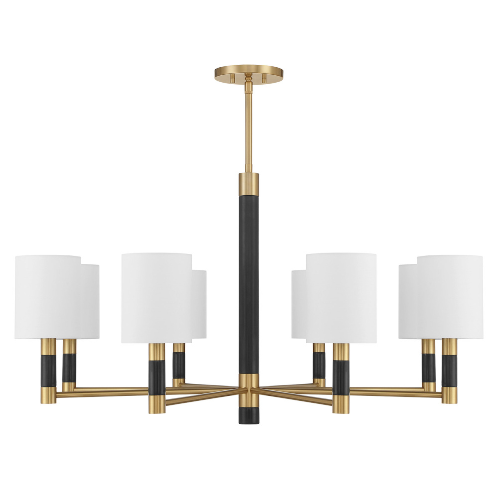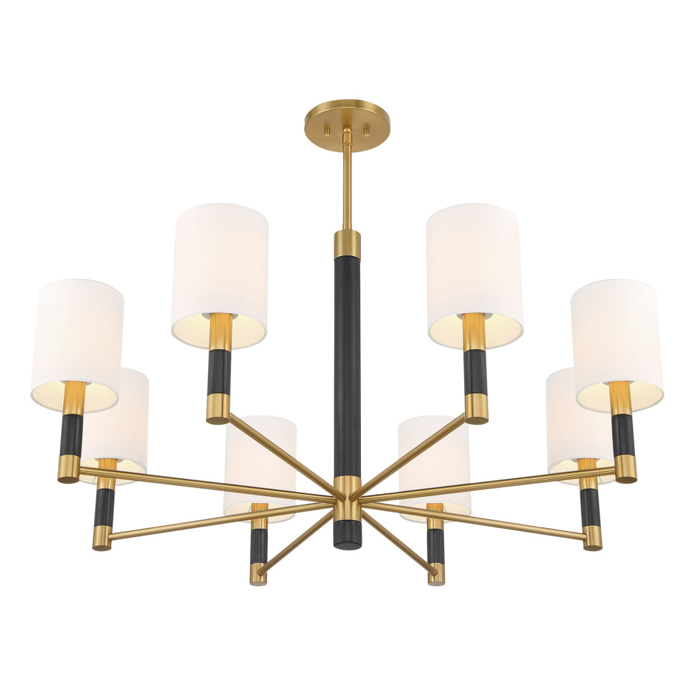 An enduring chandelier shape is adorned with beautiful black marble in the Savoy House Conrad 8-light chandelier, creating a design that will stand the test of time. Each piece of marble is unique and will feature different veining patterns! Crisp white fabric shades and a Warm Brass finish complete the look. Conrad is 22.375" in height and 40" in width. It uses eight candelabra size bulbs of up to 60 watts per bulb. Bulbs not included. Comes with four 12-inch downrods and one 6-inch downrod.