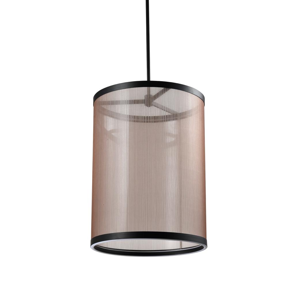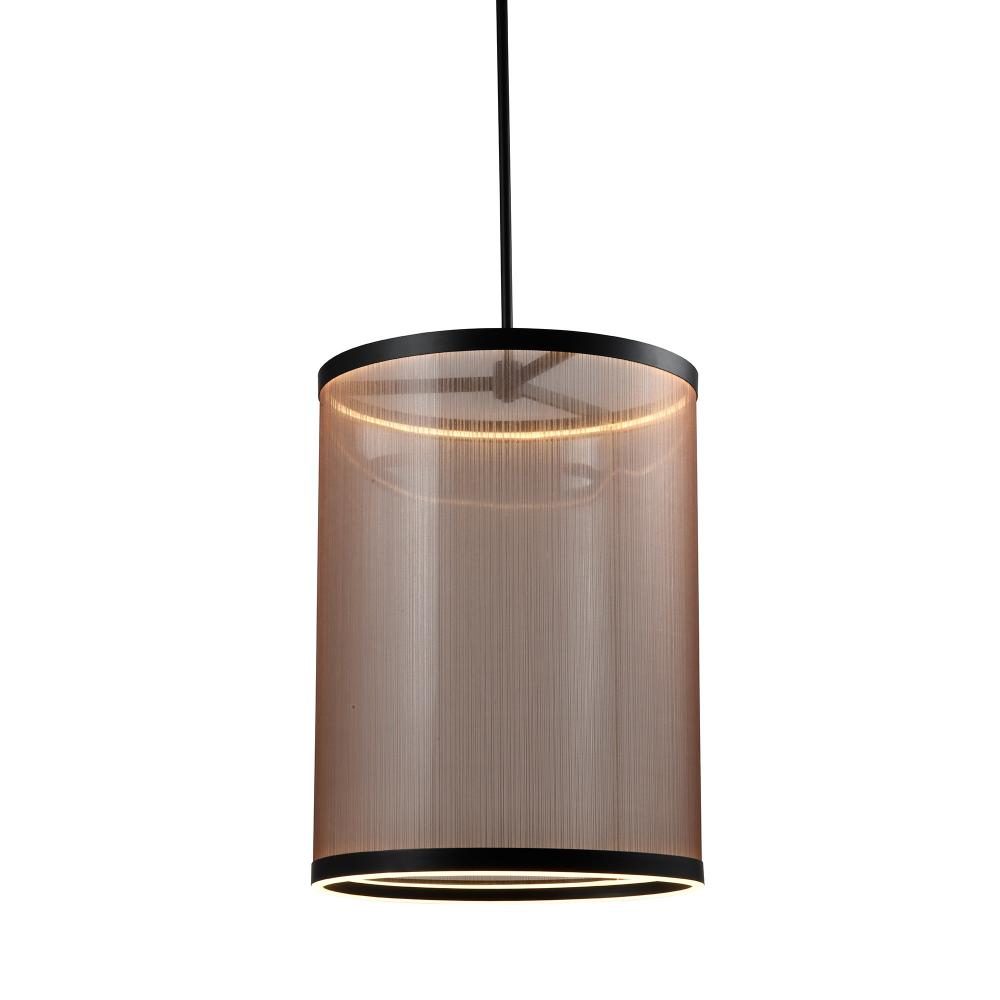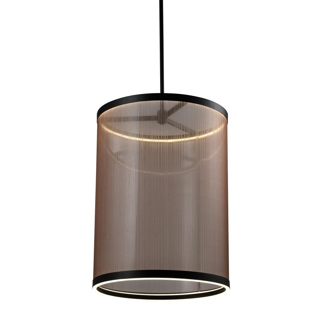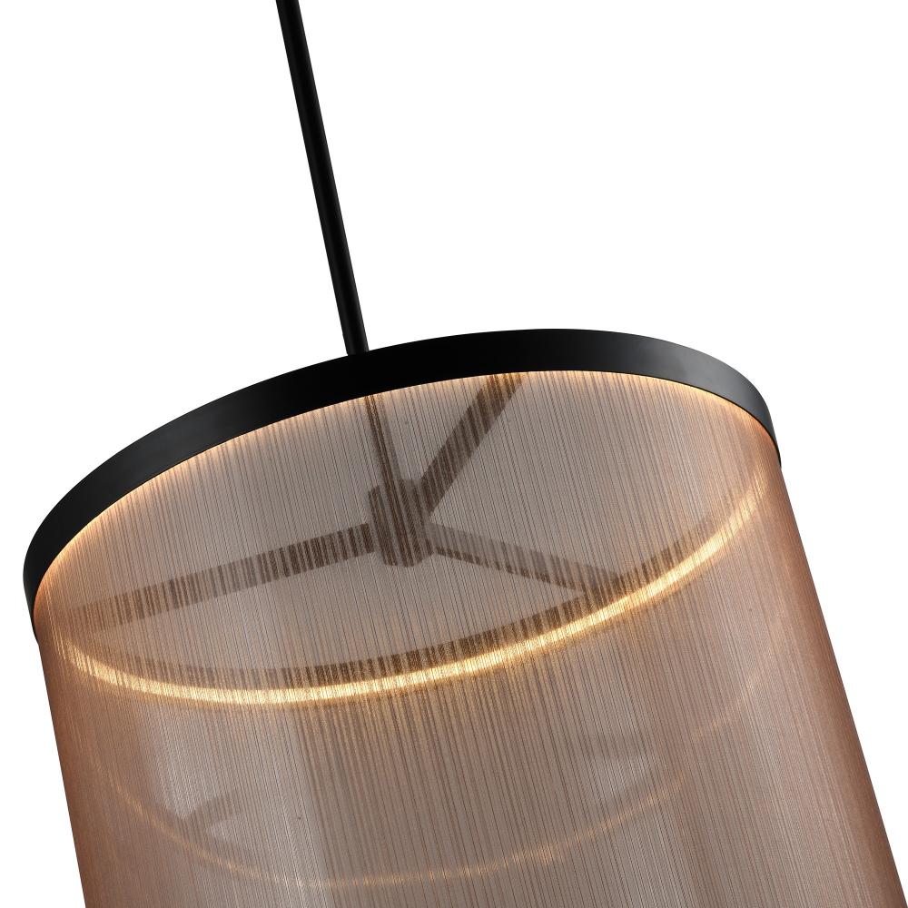 The Cora collection large chandelier enchants with its modern elegance, showcasing a sleek black metal frame paired with a bronze organza hardback shade. This LED chandelier exudes a soft yet striking glow, illuminating through its top and bottom rings to create a warm ambiance. Equipped with a versatile 5CCT switch, it offers customizable lighting to suit any mood or setting. This design seamlessly blends functionality and style, making it a refined statement piece for any interior.
