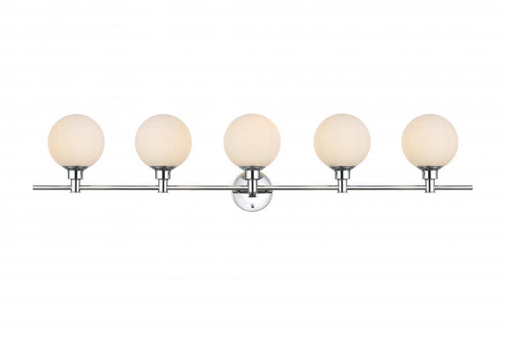 This armed sconce features a streamlined and minimalistic design that complements any space in your home. Shown with the frosted glass shade, this wall sconce is versatile and can be placed in a bathroom,entry way, or hallway. Compatible with dimmers, so you'll have the right amount of light in any given time of the day. The hardwired fixture is safe to use in damp locations. Made from iron with a modern finish, it includes a round backplate and a matching arm that holds in place five 40W bulb ( sold separately). Available in multiple finishes. Can be installed as an uplight or a downlight.