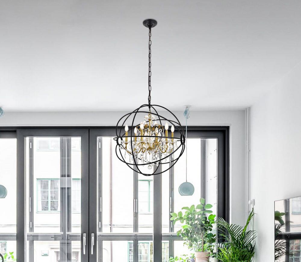Cordelia 6 Light Black and Gold Crystal Pendant