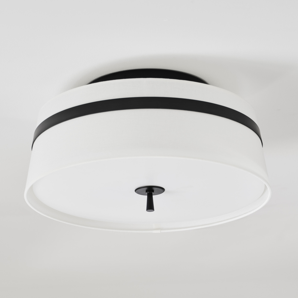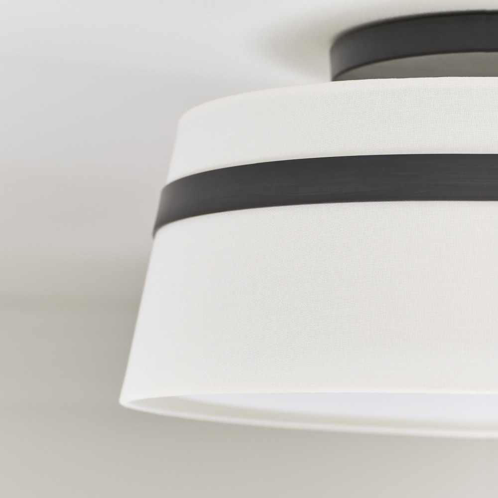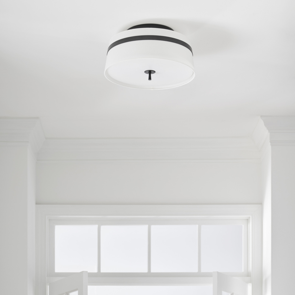 The simple, transitional Cordtlandt pendant and flush mount series features a perfectly proportioned conical hanging shade with an optional metal band cinching it at the waist.