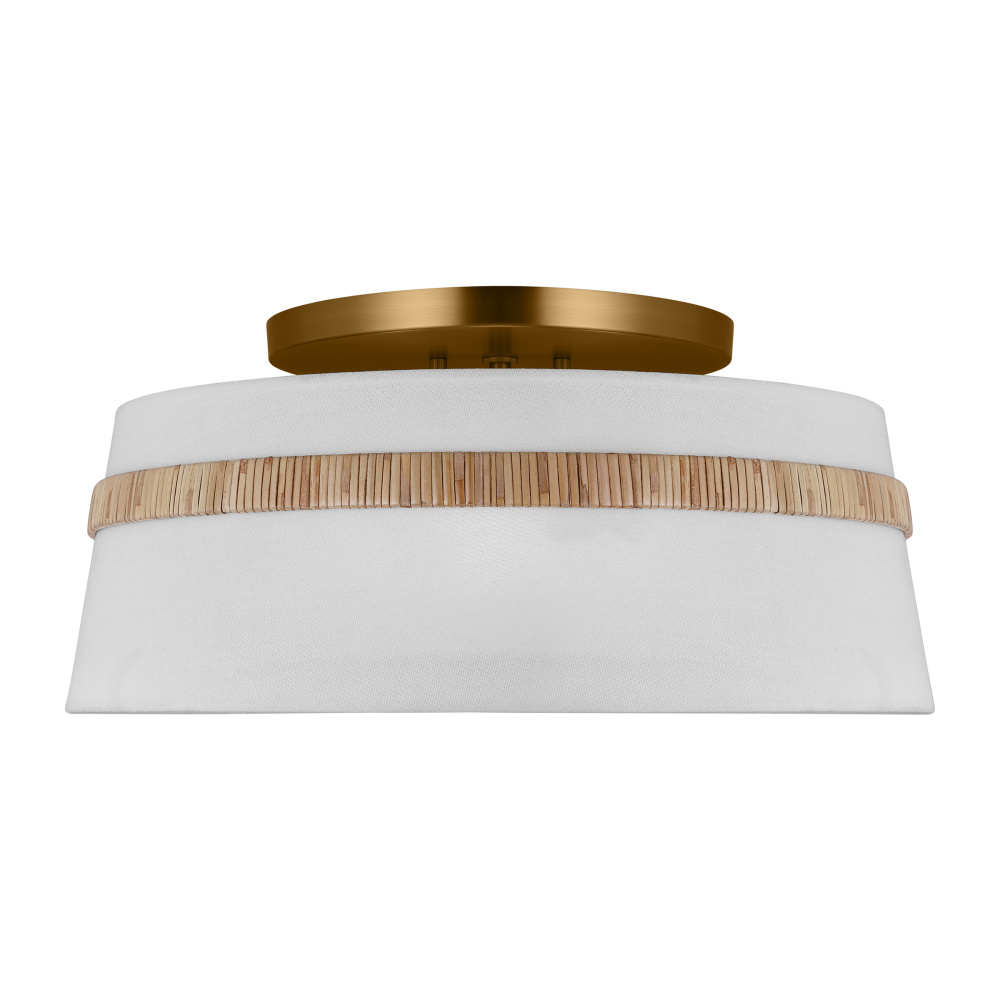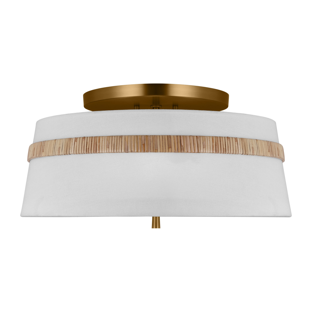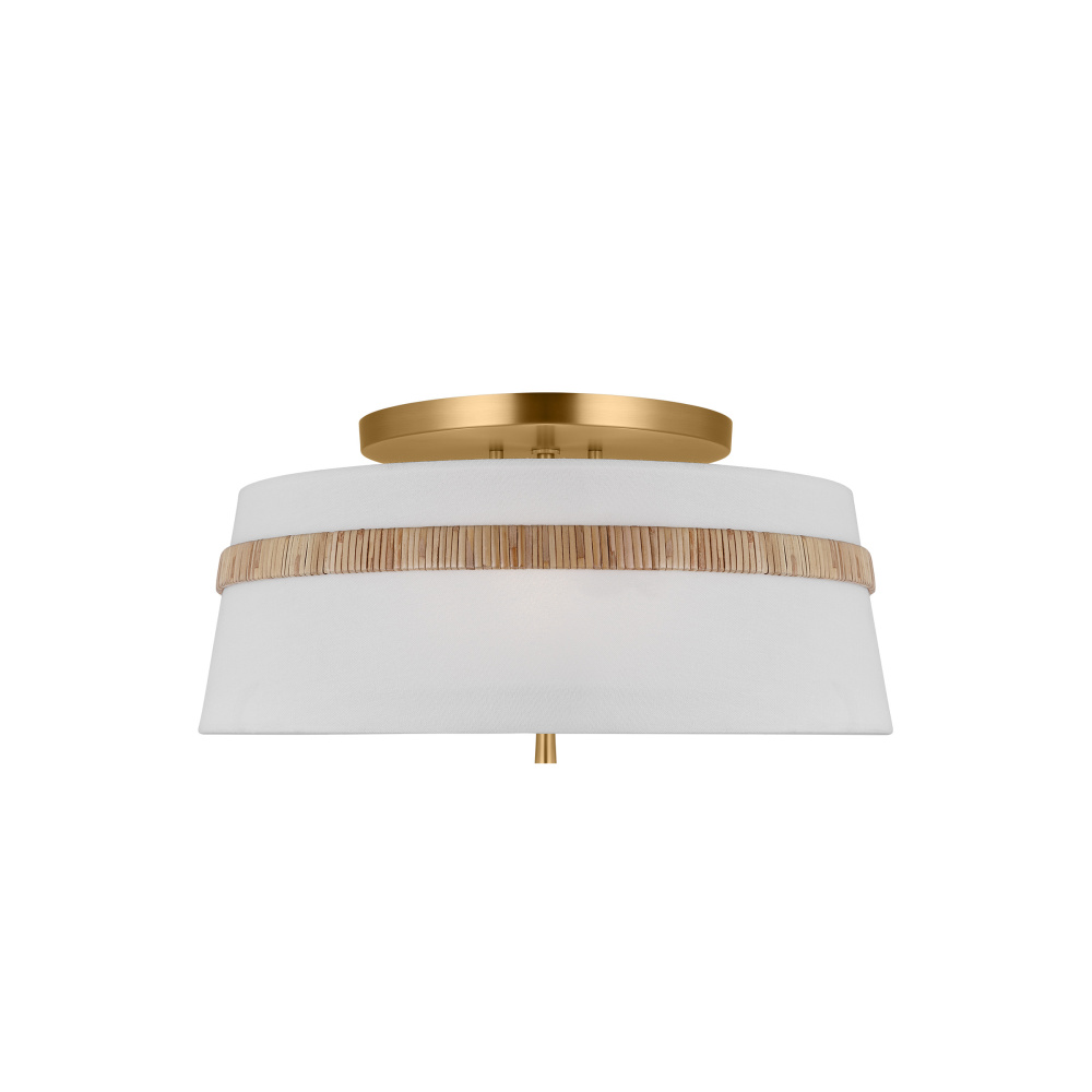 The Cordtlandt series by Alexa Hampton has a simple, purposeful design, making it a perfect addition to any uptown chic décor. The round-shaped flush mount features an etched glass diffuser and a decorative end stem that ties the look together. Updated with a rattan woven ring detail elevates the design with a coastal vibe.