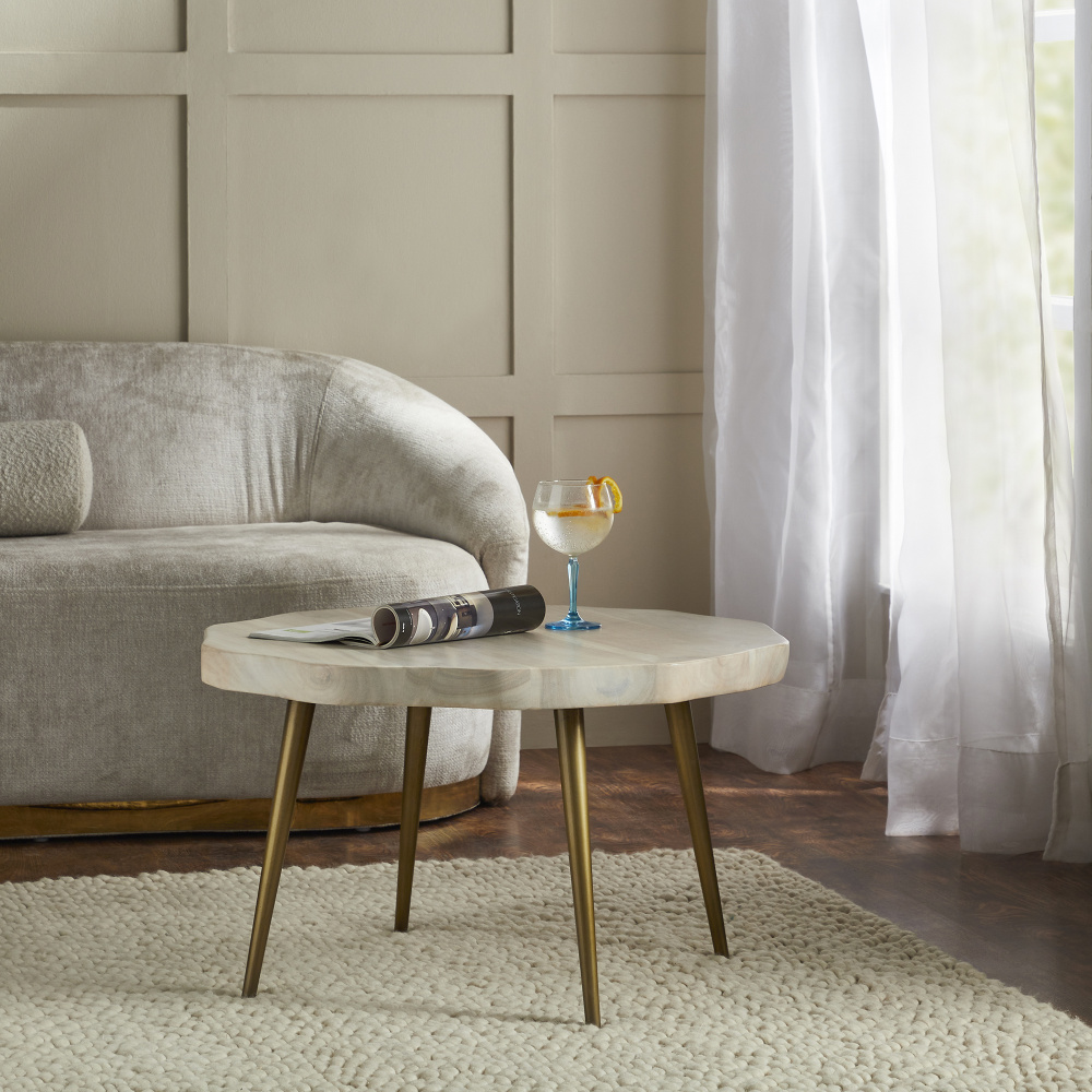 The simple beauty of acacia wood’s natural grain takes center stage in this coffee table design. Within the modern farmhouse or rustic chic interior, this piece of furniture’s contrasting construction of wood and iron will be right at home. Set in the living room, this coffee table will quickly become an essential part of the room’s aesthetic and functionality.