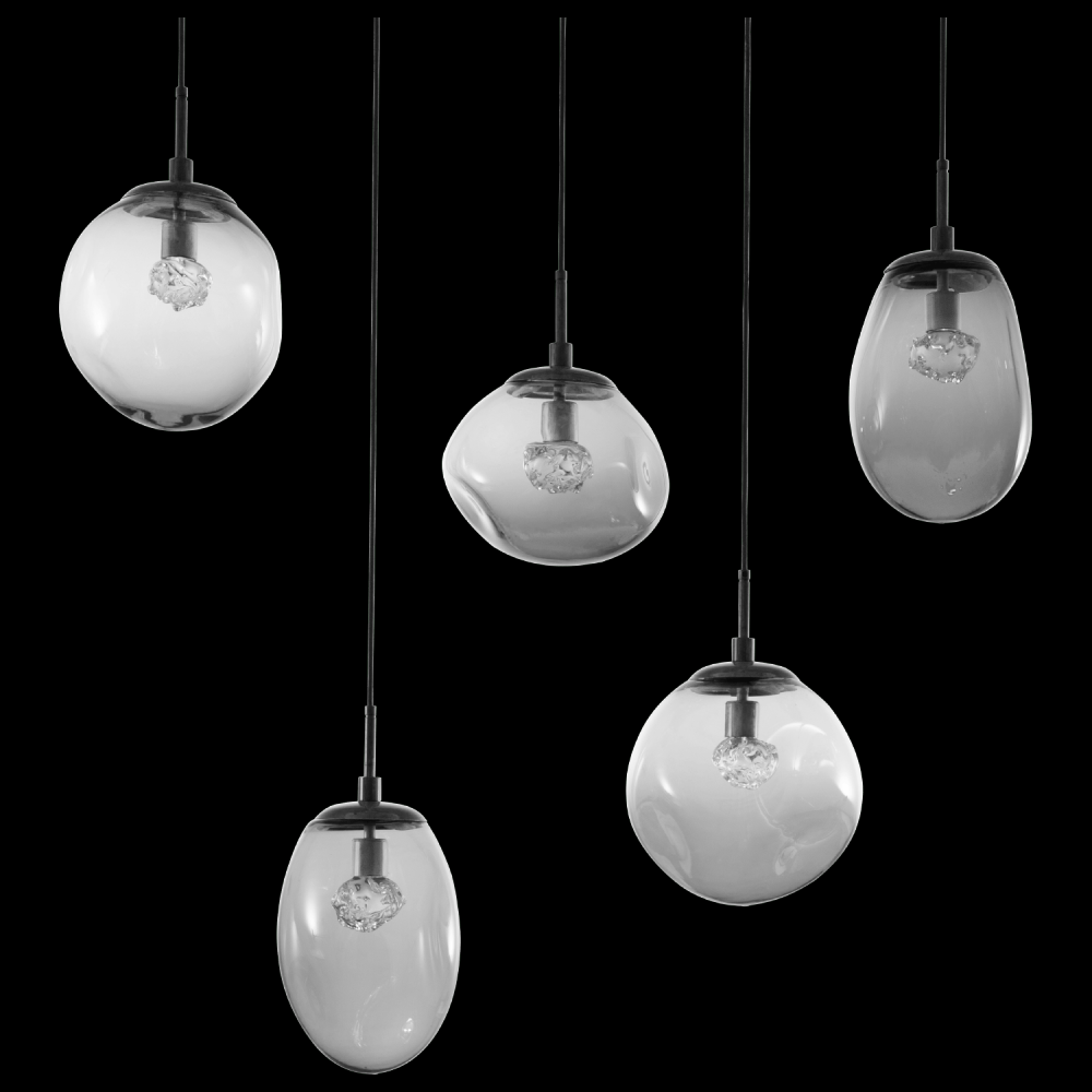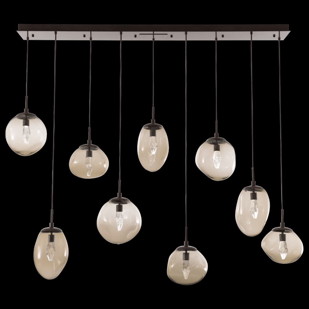 Cosmos Linear Multi - Pendant - Classic Silver - Floret Inner - Amber Outer - Cloth Braided Cord - LED - 2700K