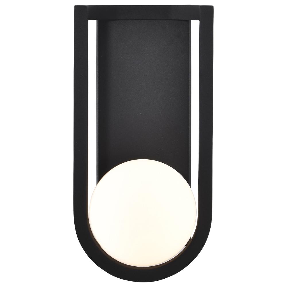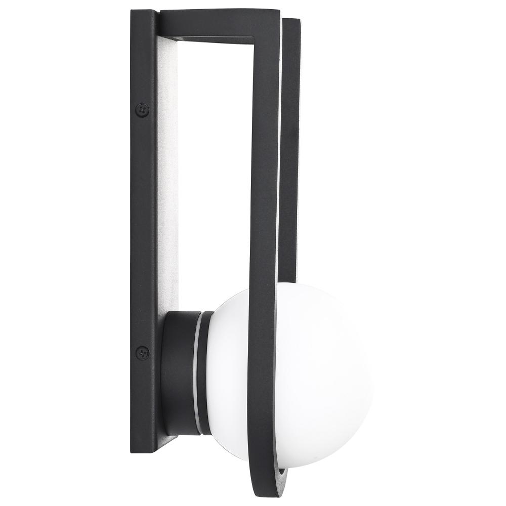The Cradle 62-1619 LED medium wall lantern makes a stylish, unique impression on a home's exterior with its contemporary-modern design. The long scoop saddles a perfect orb of opal-white glass that houses an integrated LED light source. At only 6 watts