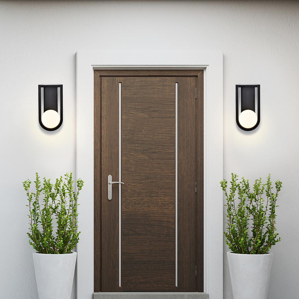 The Cradle LED medium wall lantern makes a stylish, unique impression on a home's exterior with its contemporary-modern design. The long scoop saddles a perfect orb of opal-white glass that houses an integrated LED light source. At only 6 watts, the fi