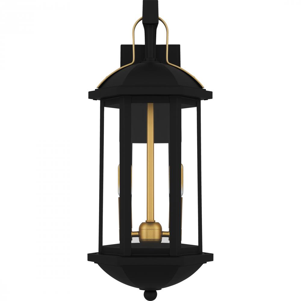 Illuminate your homes exterior with the timeless style of Crestfield lanterns. The elongated frame is finished in matte black and accented beautifully with brushed gold for a hint of luster and sophistication. Clear tempered glass panels complete the look