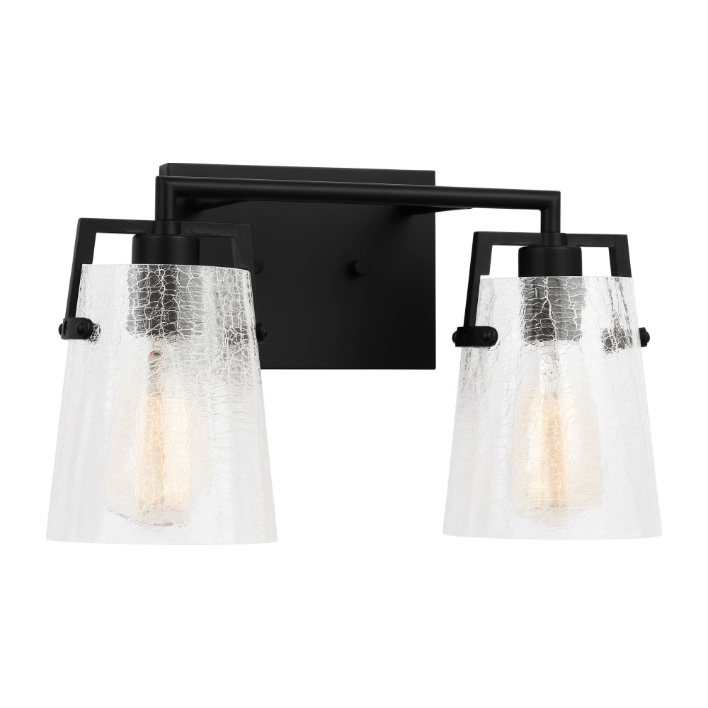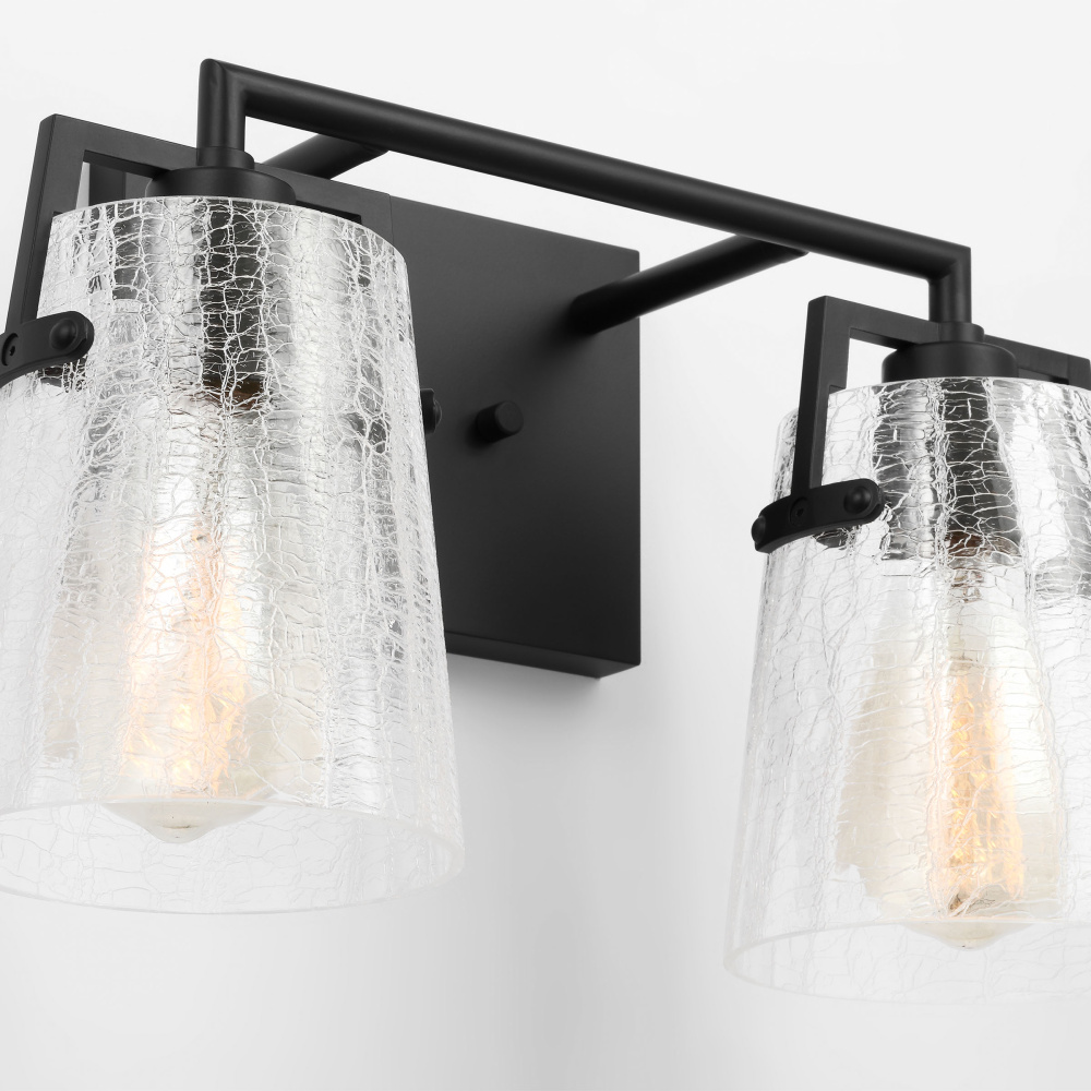 Crafted with Steel in a Midnight Black finish with clear crackle glass shades