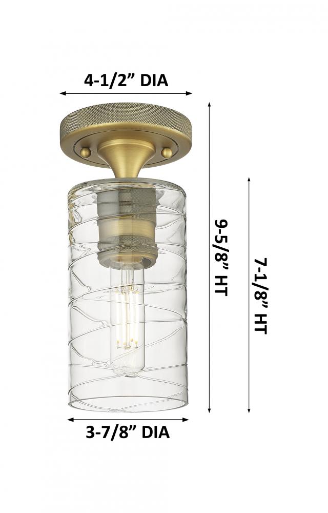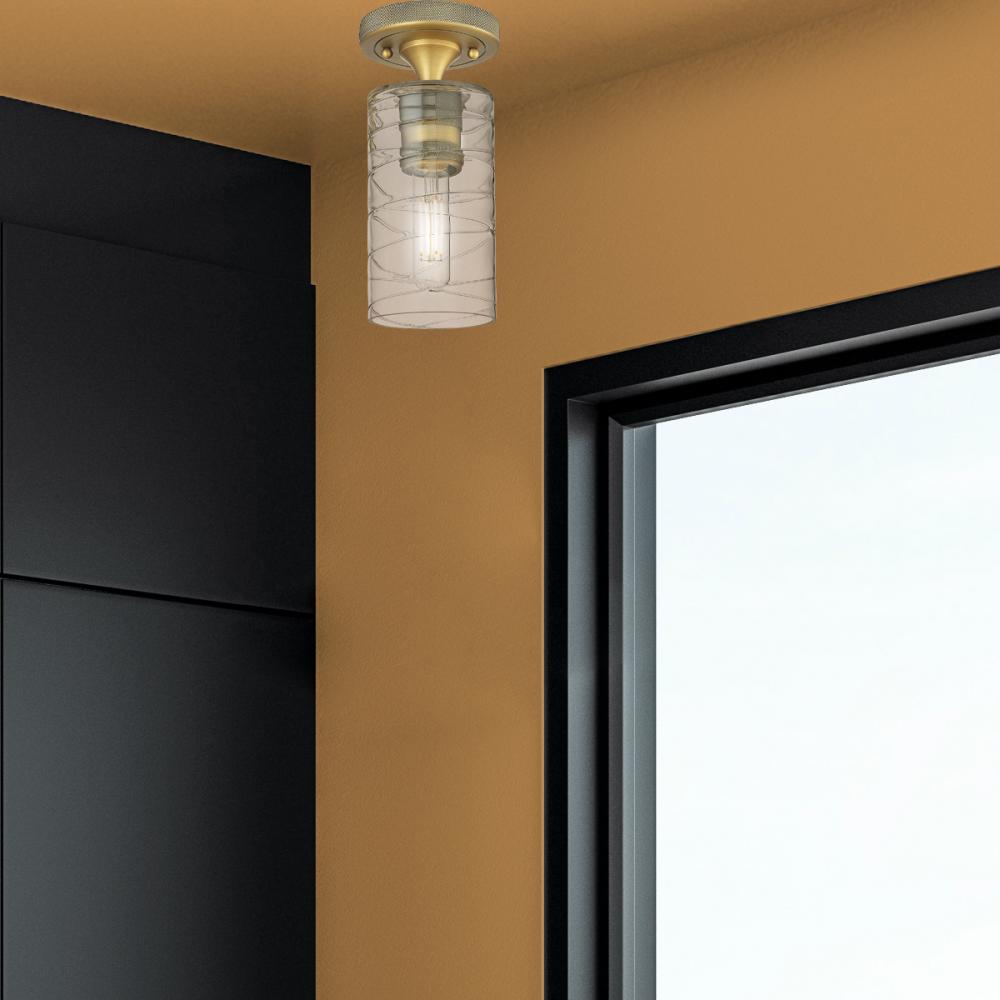 Crown Point - 1 Light - 5 inch - Brushed Brass - Deco Swirl Shade - Flush Mount