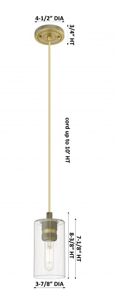 Crown Point - 1 Light - 5 inch - Brushed Brass - Clear Shade - Pendant