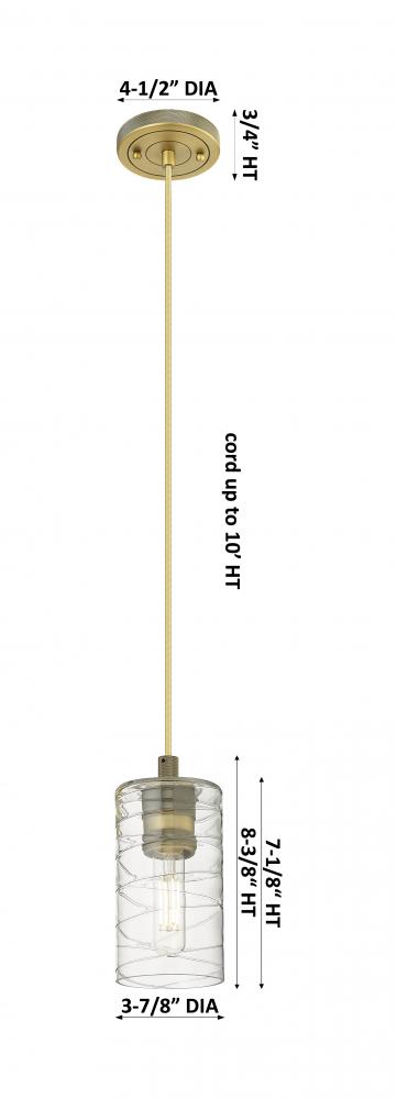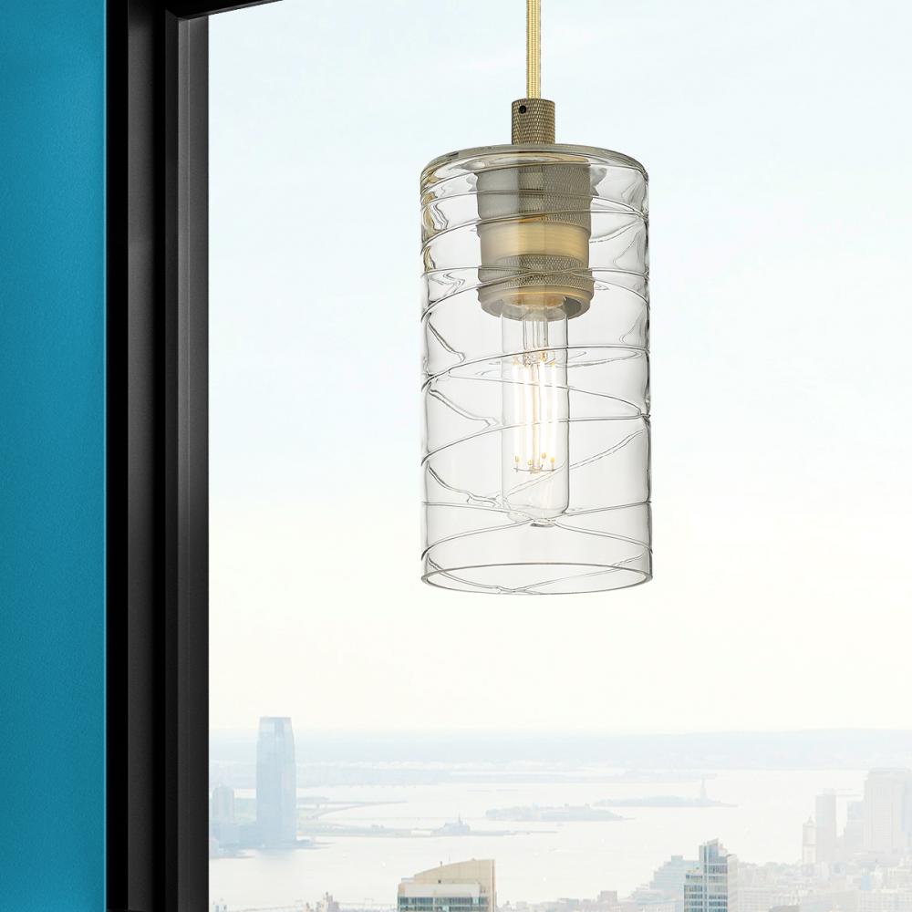 Crown Point - 1 Light - 5 inch - Brushed Brass - Deco Swirl Shade - Pendant