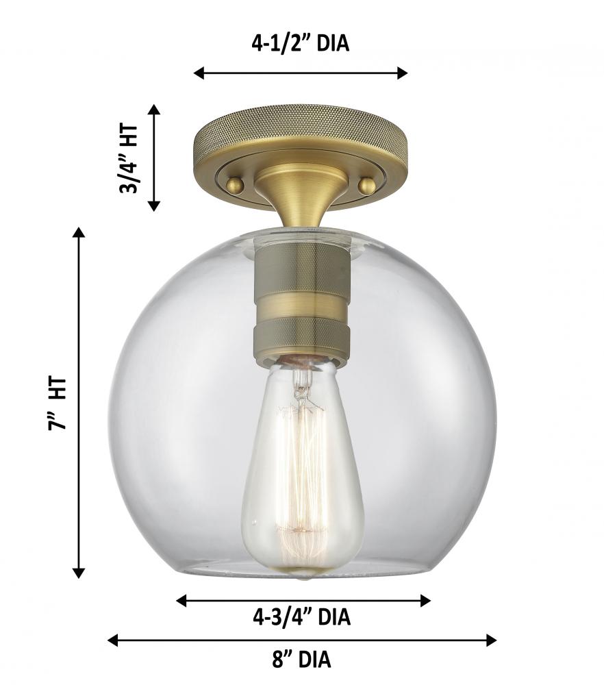 Crown Point - 1 Light - 8 inch - Brushed Brass - Clear Shade - Flush Mount