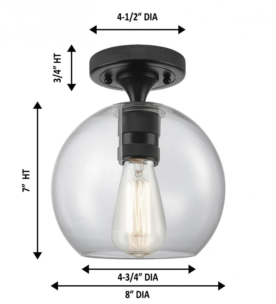 Crown Point - 1 Light - 8 inch - Matte Black - Clear Shade - Flush Mount