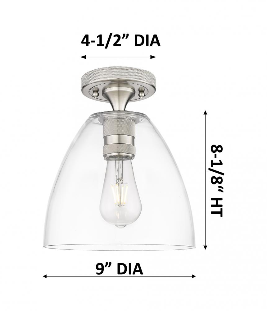 Crown Point - 1 Light - 9 inch - Satin Nickel - Clear Shade - Flush Mount
