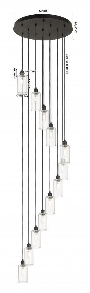 Crown Point - 12 Light - 24 inch - Matte Black - Clear Shade - Multi Pendant