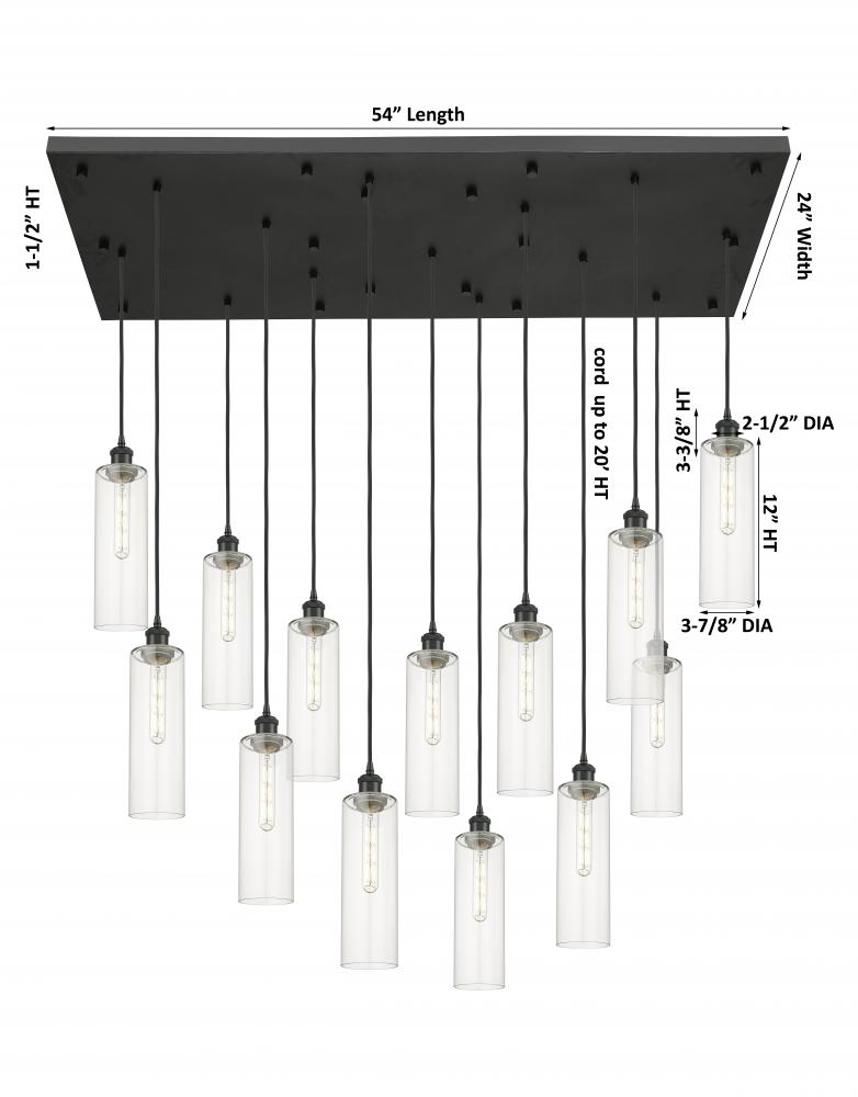 Crown Point - 13 Light - 54 inch - Matte Black - Clear Shade - Multi Pendant