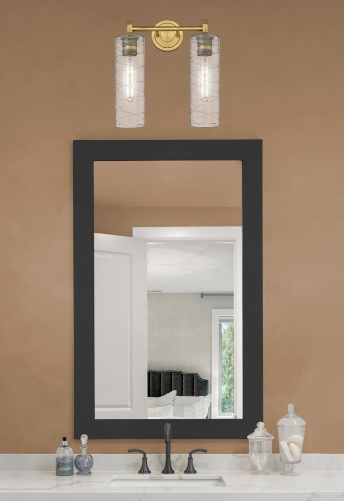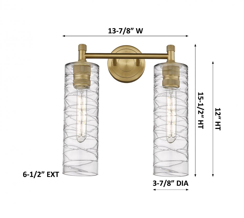 Crown Point - 2 Light - 14 inch - Brushed Brass - Deco Swirl Shade - Bath Vanity Light