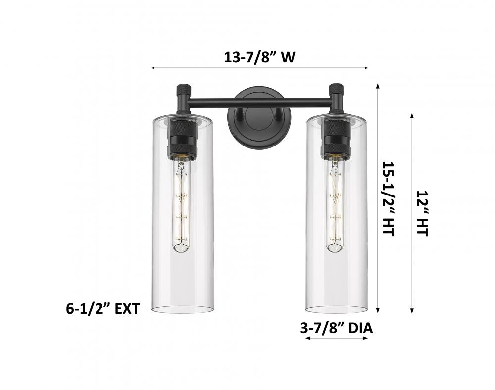 Crown Point - 2 Light - 14 inch - Matte Black - Clear Shade - Bath Vanity Light