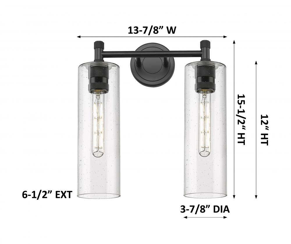 Crown Point - 2 Light - 14 inch - Matte Black - Seedy Shade - Bath Vanity Light