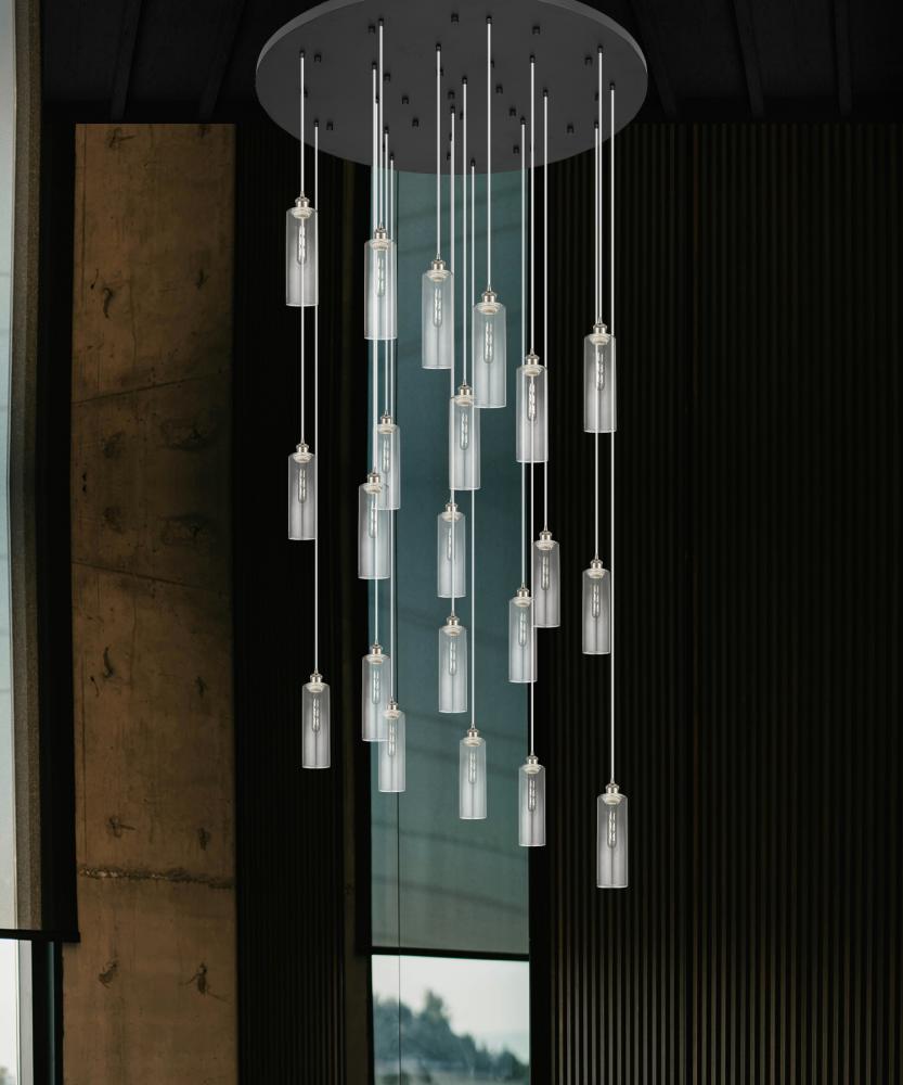 Crown Point - 21 Light - 48 inch - Brushed Satin Nickel - Clear Shade - Multi Pendant