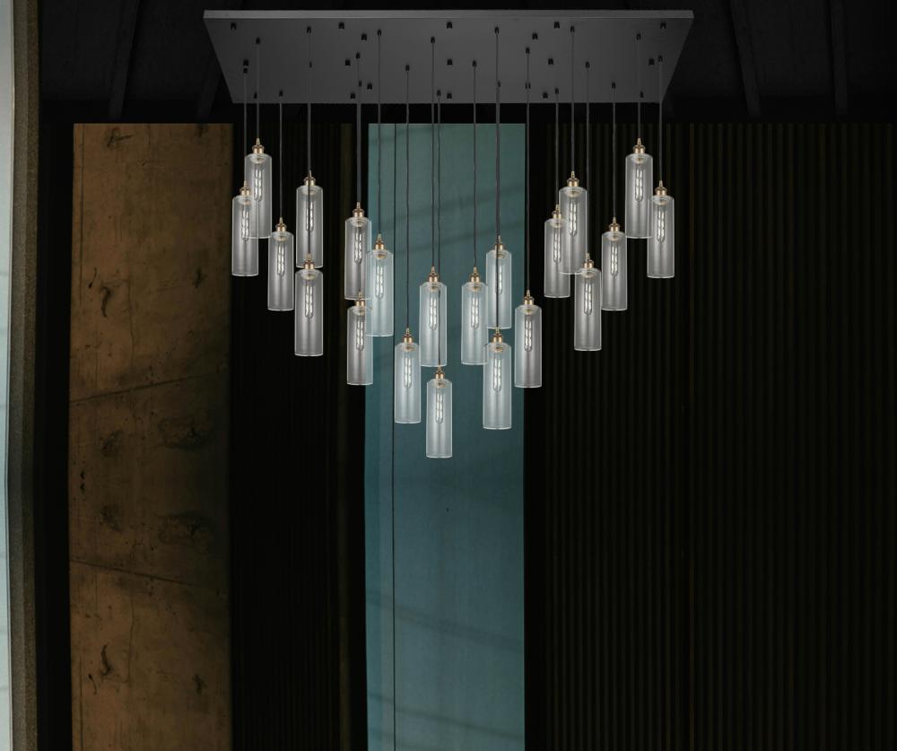 The organic teardrop shape of the Crown Point pendant is artfully hung from a tiered metal frame that is complemented by a single filament bulb. These pendants look great as individual fixtures but make a grand statement when paired with our multi-port ha