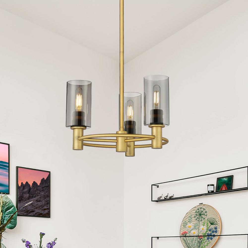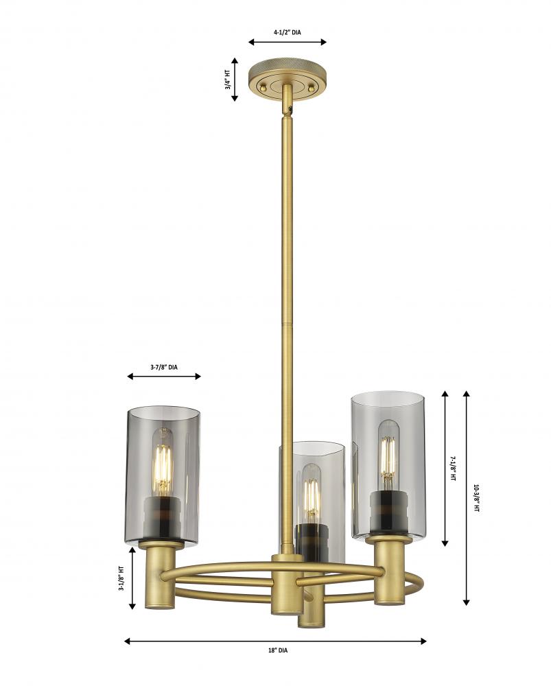 Crown Point - 3 Light - 18 inch - Brushed Brass - Light Smoke Shade - Pendant