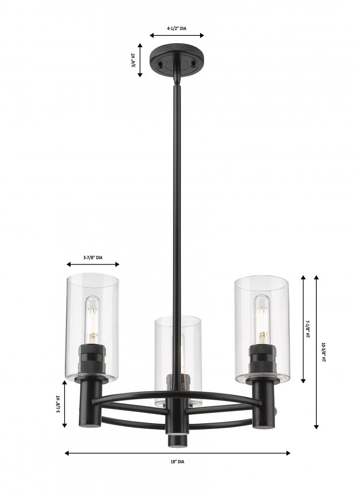 Crown Point - 3 Light - 18 inch - Matte Black - Clear Shade - Pendant