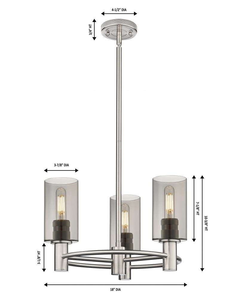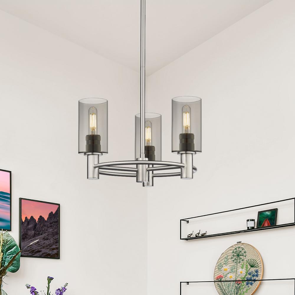 Crown Point - 3 Light - 18 inch - Satin Nickel - Light Smoke Shade - Pendant