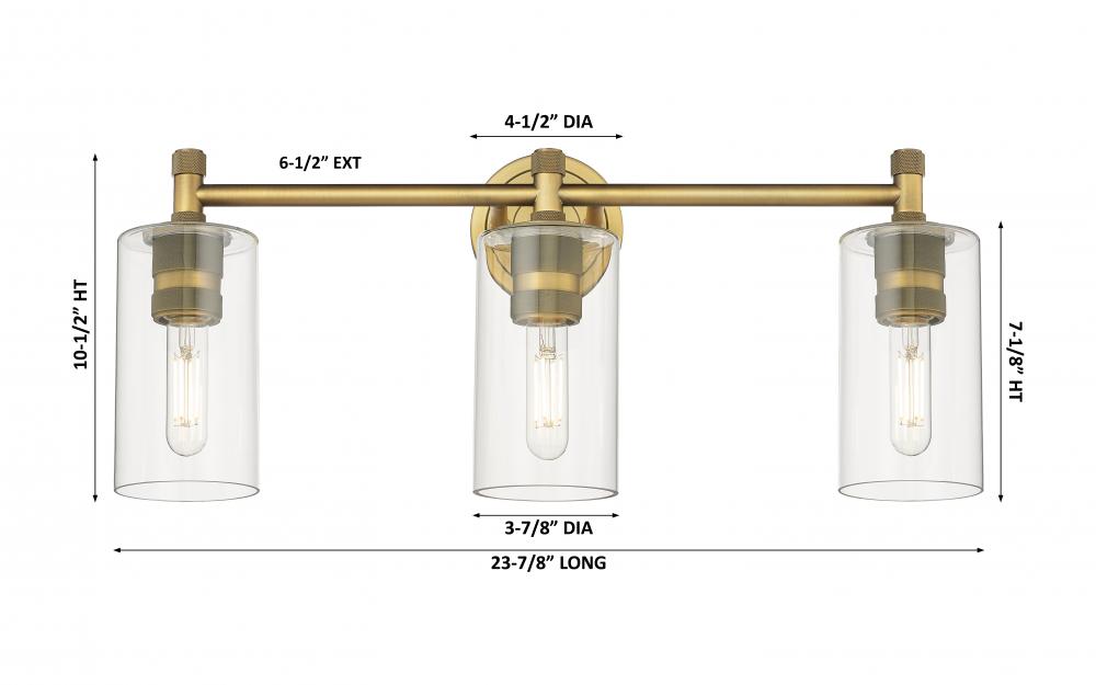 Crown Point - 3 Light - 24 inch - Brushed Brass - Clear Shade - Bath Vanity Light