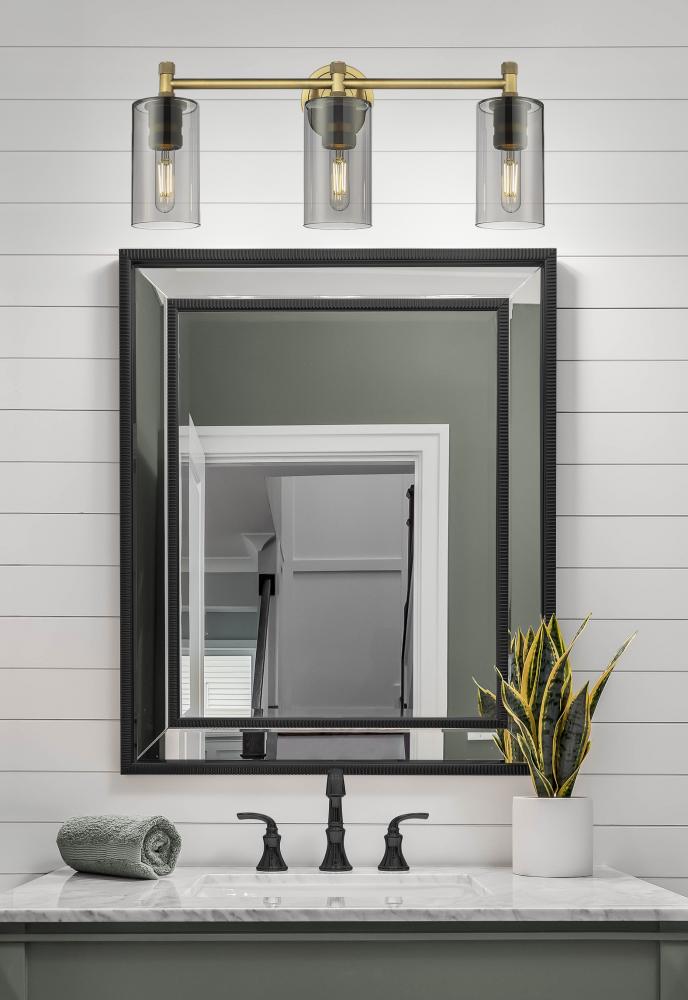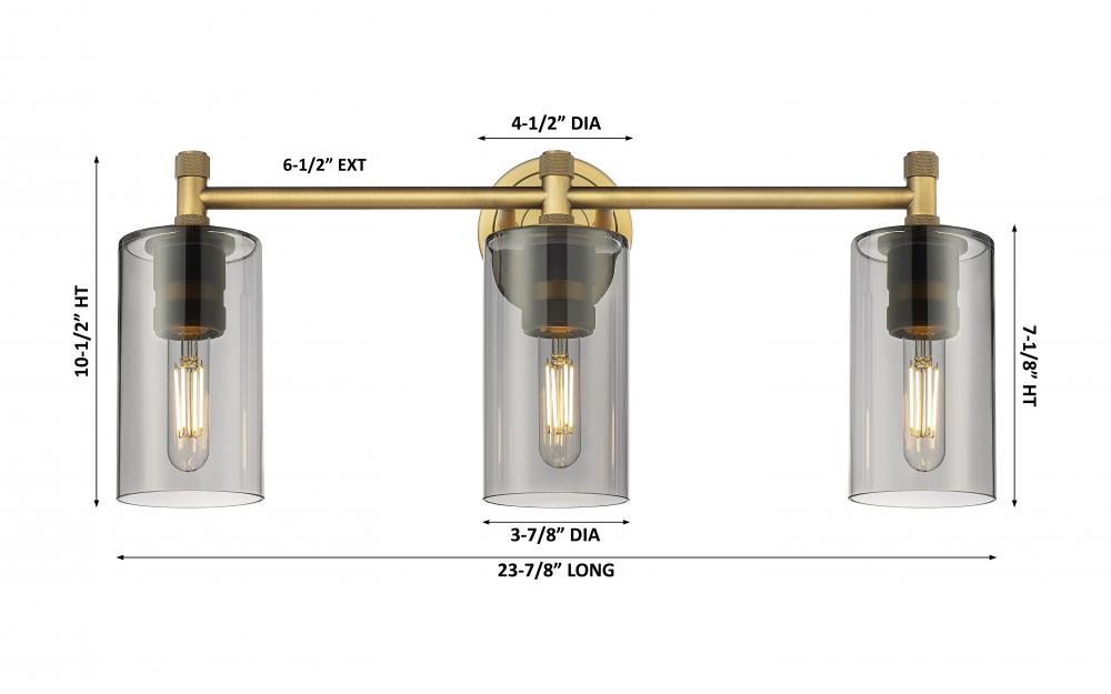 Crown Point - 3 Light - 24 inch - Brushed Brass - Light Smoke Shade - Bath Vanity Light