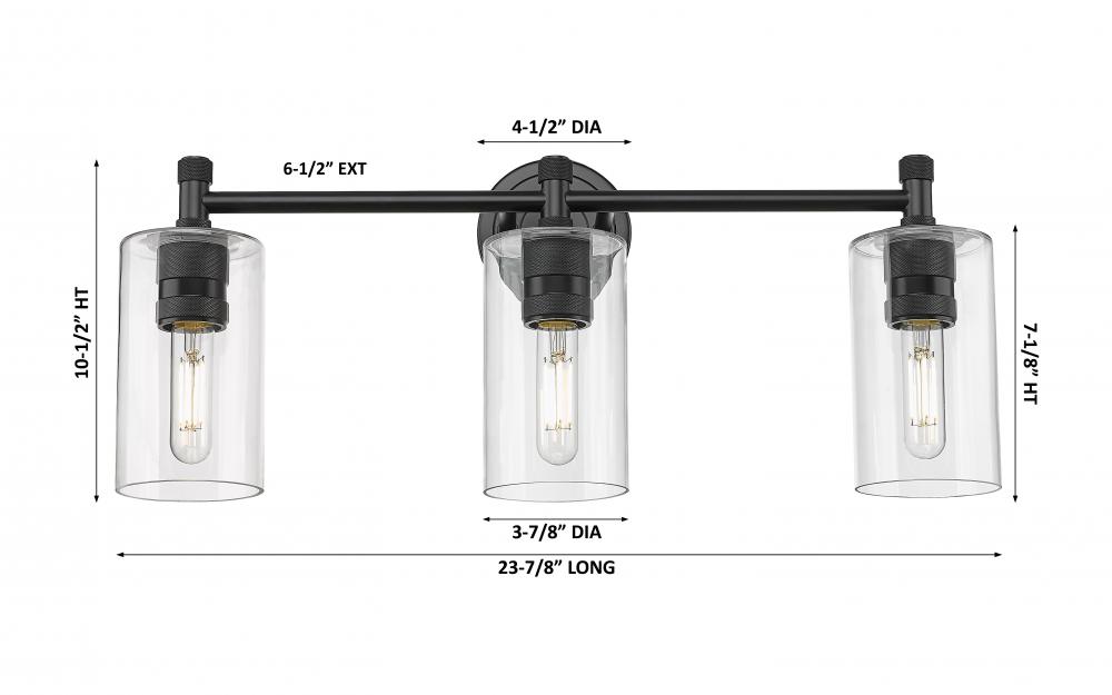 Crown Point - 3 Light - 24 inch - Matte Black - Clear Shade - Bath Vanity Light