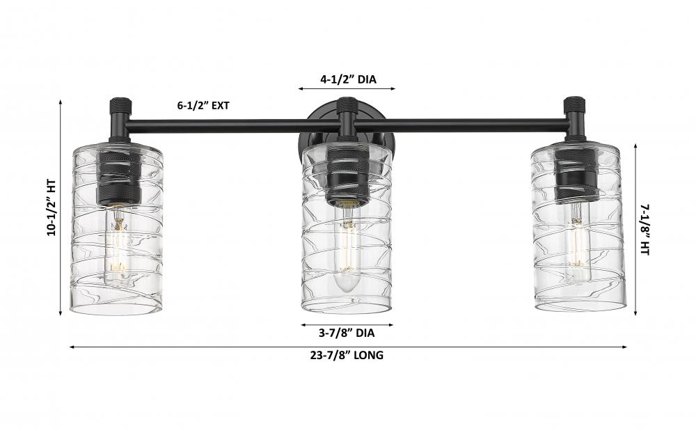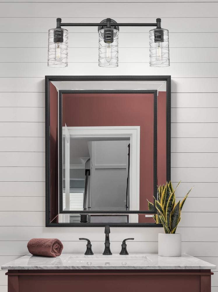 Crown Point - 3 Light - 24 inch - Matte Black - Deco Swirl Shade - Bath Vanity Light