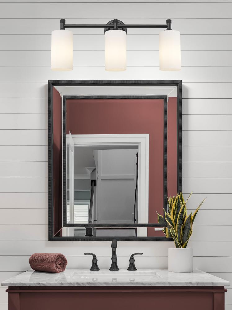Crown Point - 3 Light - 24 inch - Matte Black - White Shade - Bath Vanity Light