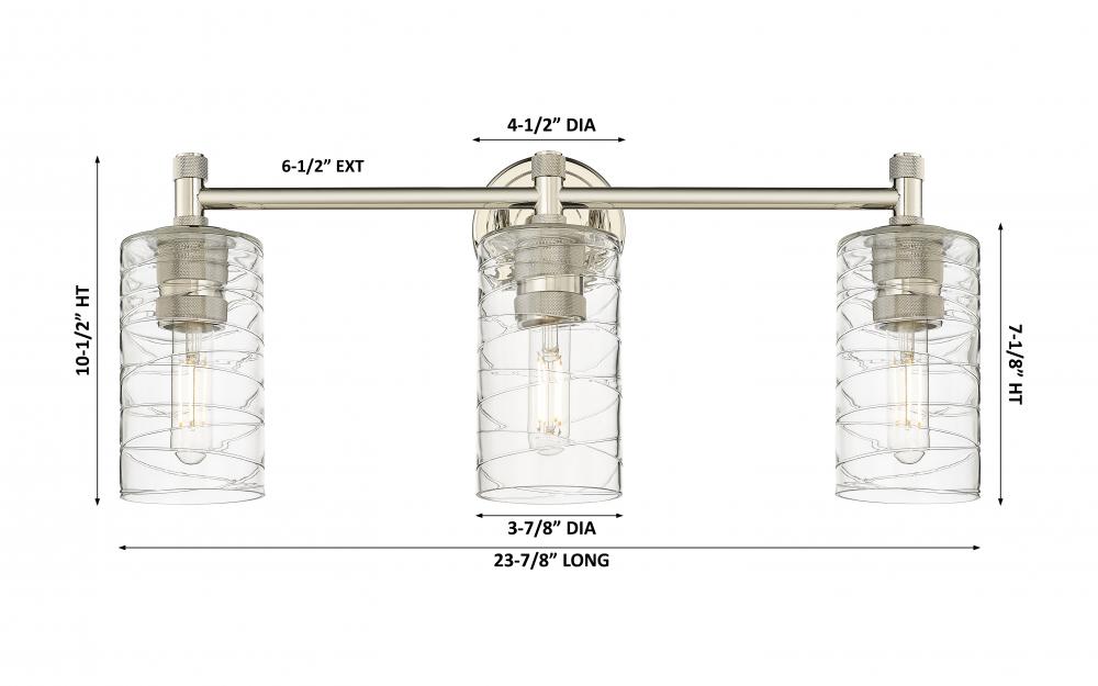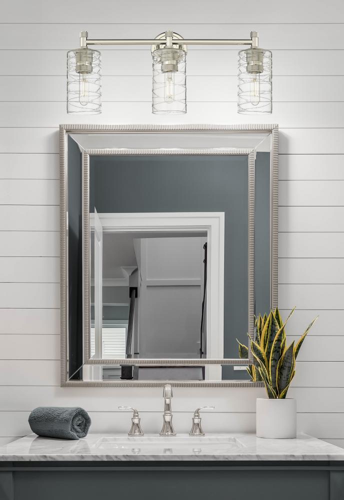 Crown Point - 3 Light - 24 inch - Polished Nickel - Deco Swirl Shade - Bath Vanity Light