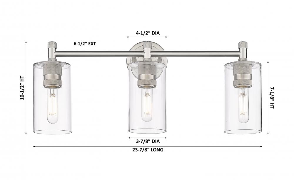 Crown Point - 3 Light - 24 inch - Satin Nickel - Clear Shade - Bath Vanity Light