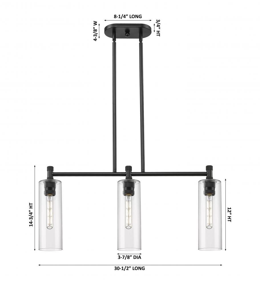 Crown Point - 3 Light - 31 inch - Matte Black - Clear Shade - Island Light