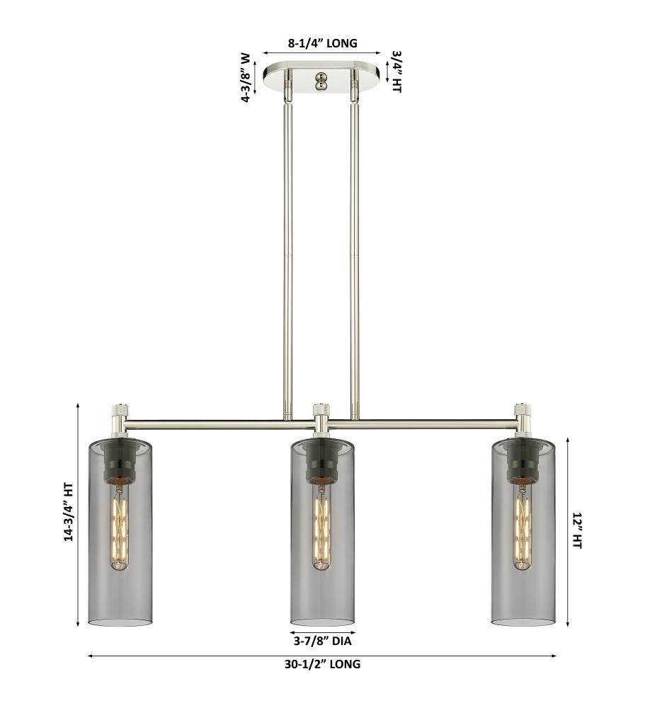 Crown Point - 3 Light - 31 inch - Polished Nickel - Light Smoke Shade - Island Light