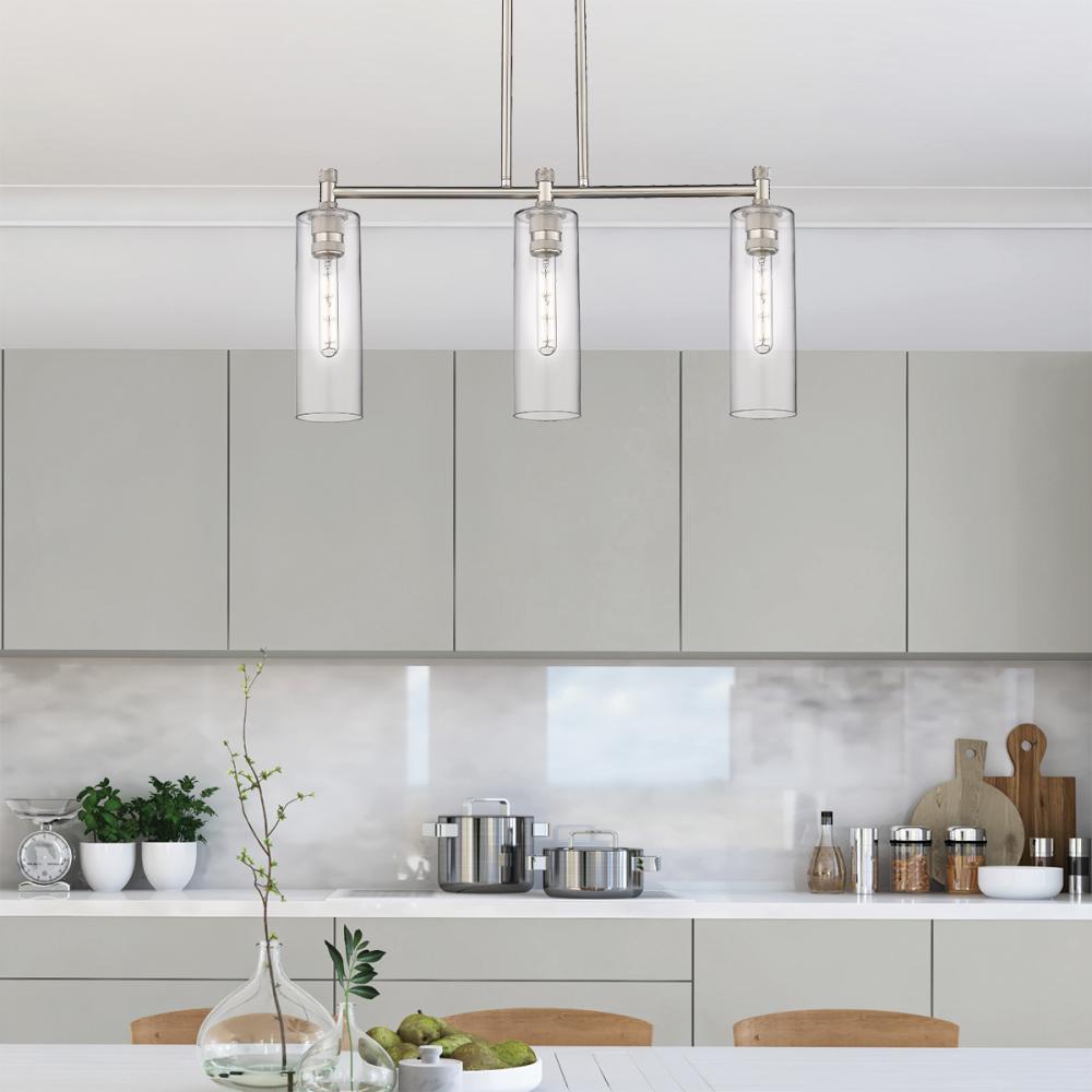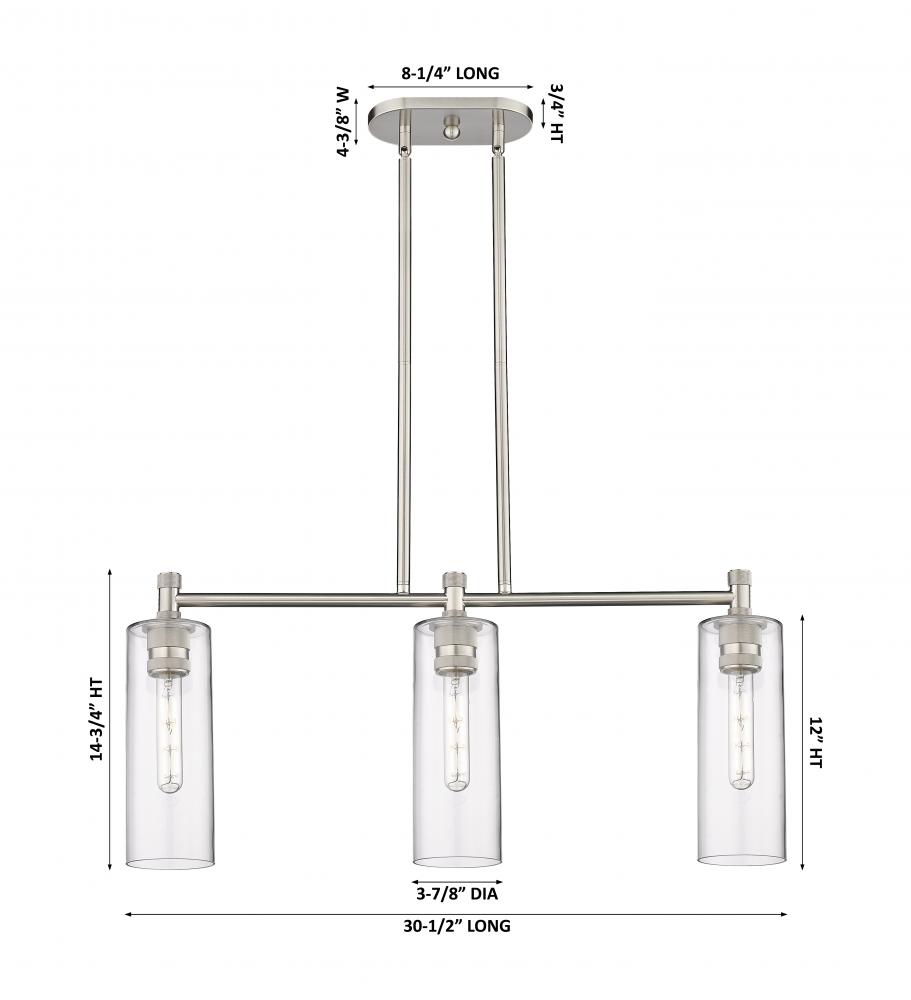Crown Point - 3 Light - 31 inch - Satin Nickel - Clear Shade - Island Light