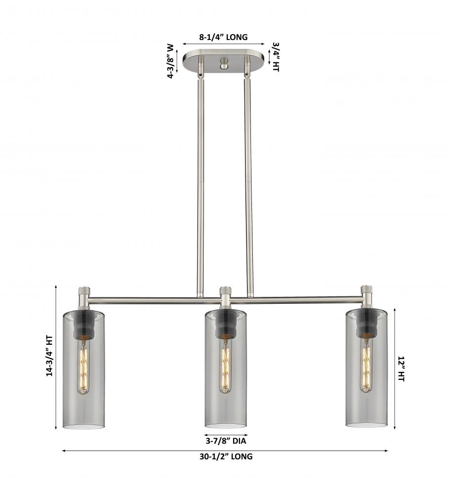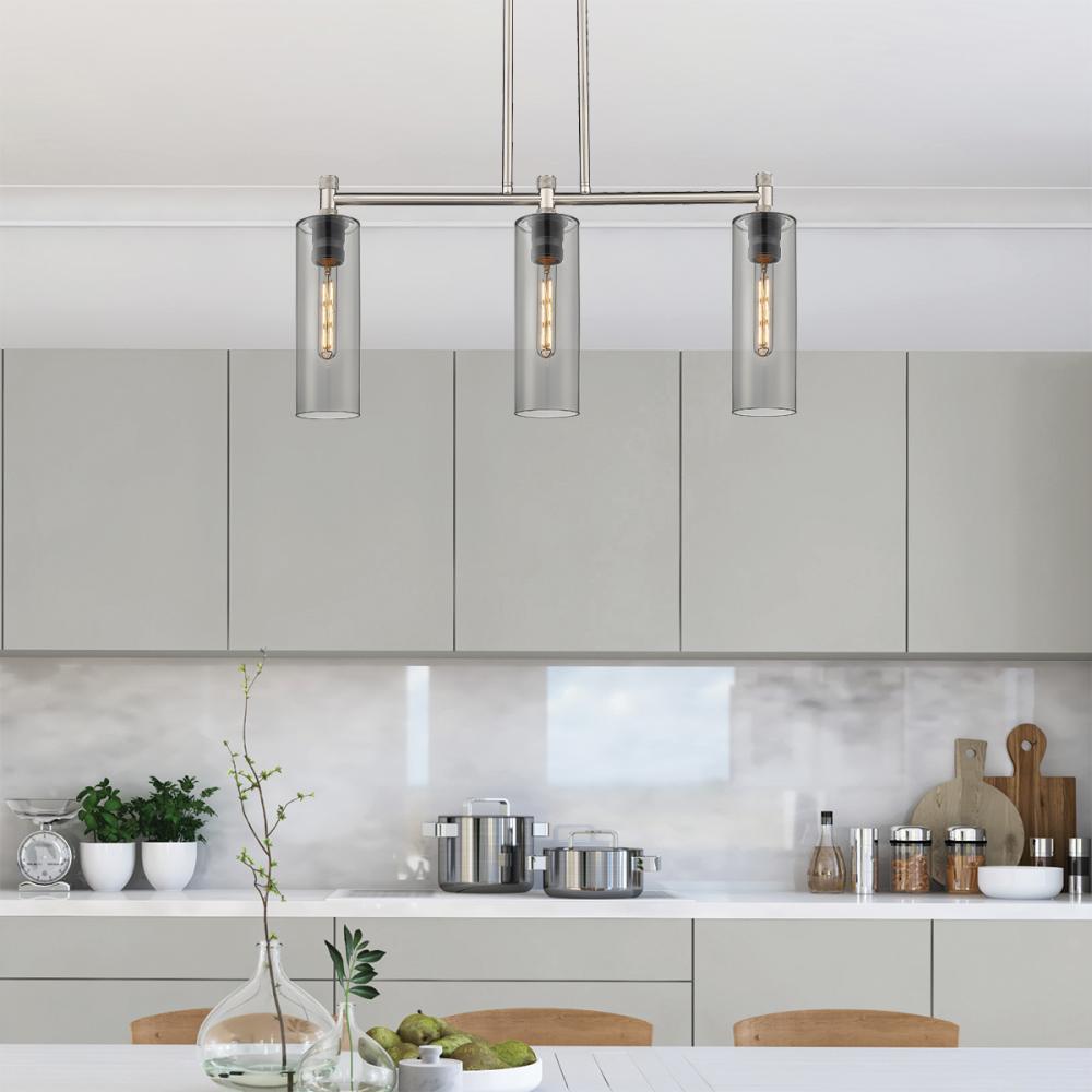 Crown Point - 3 Light - 31 inch - Satin Nickel - Light Smoke Shade - Island Light