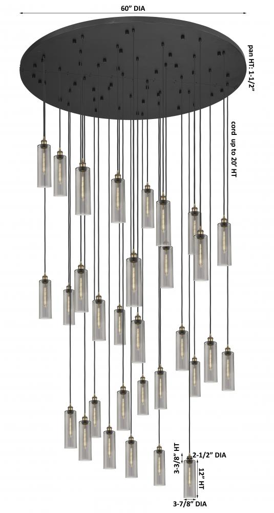 Crown Point - 31 Light - 60 inch - Brushed Brass - Light Smoke Shade - Multi Pendant