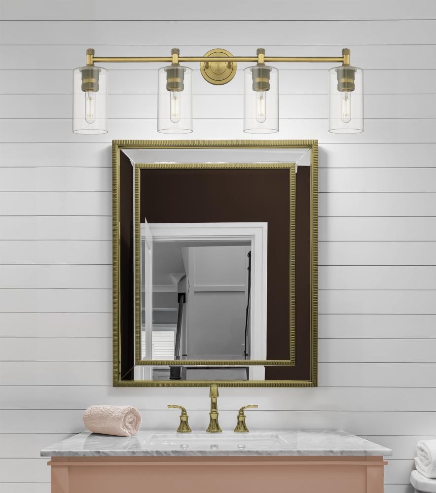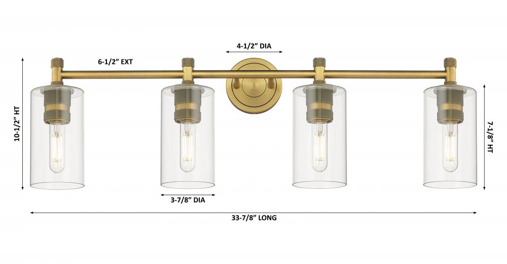 Crown Point - 4 Light - 34 inch - Brushed Brass - Clear Shade - Bath Vanity Light