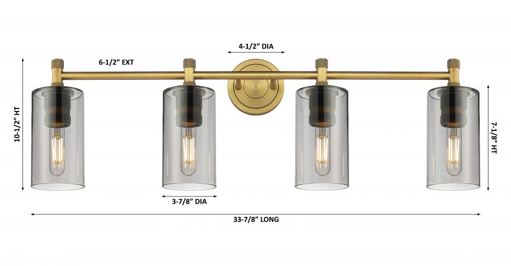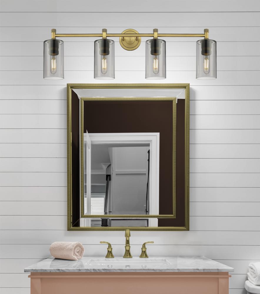 Crown Point - 4 Light - 34 inch - Brushed Brass - Light Smoke Shade - Bath Vanity Light