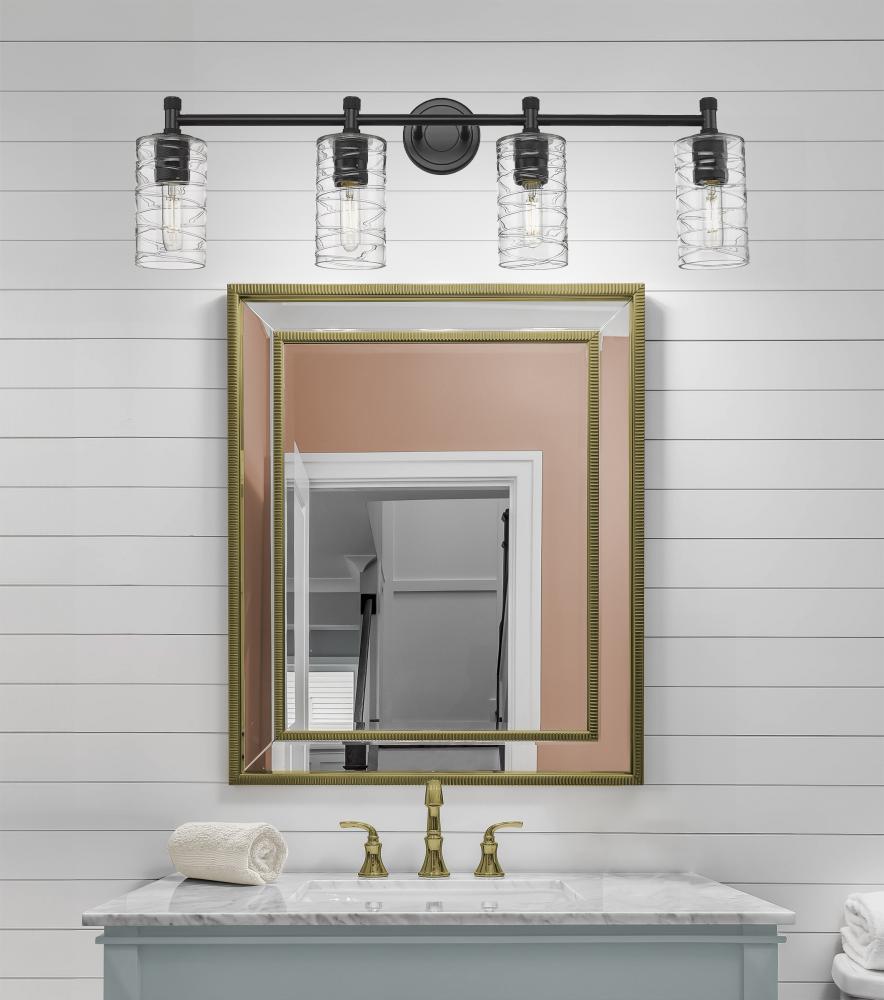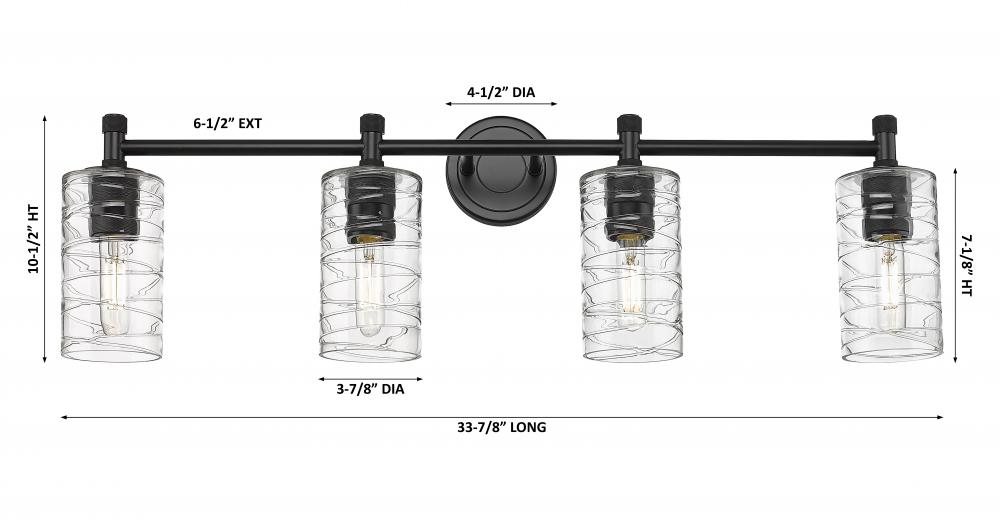 Crown Point - 4 Light - 34 inch - Matte Black - Deco Swirl Shade - Bath Vanity Light