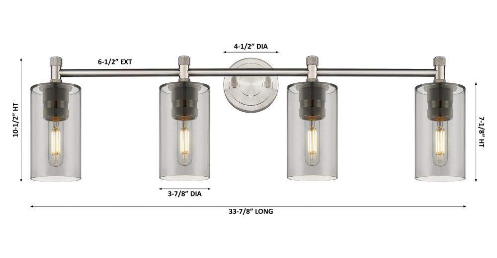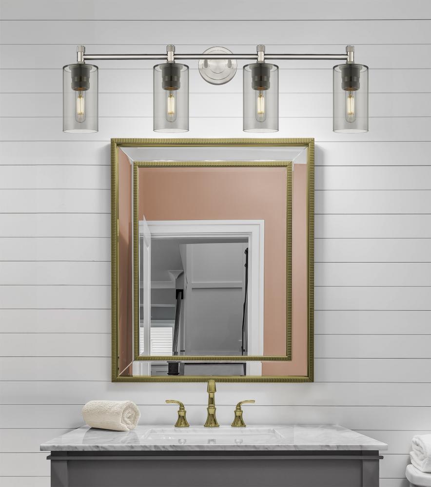 Crown Point - 4 Light - 34 inch - Satin Nickel - Light Smoke Shade - Bath Vanity Light