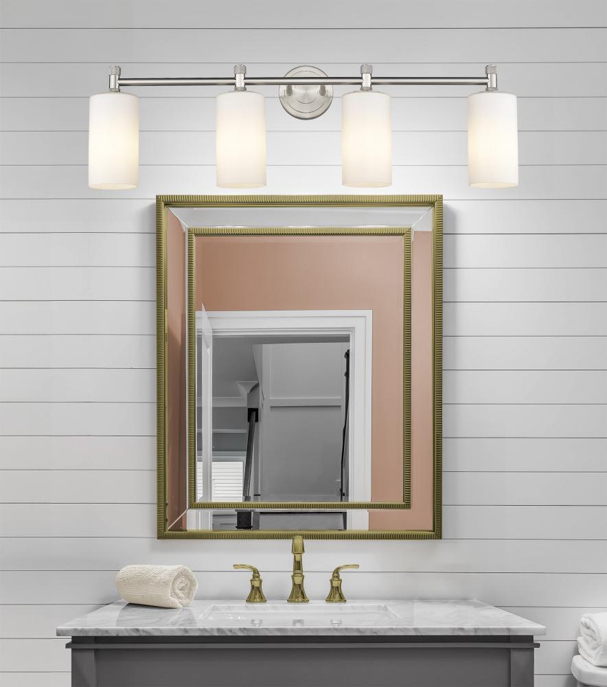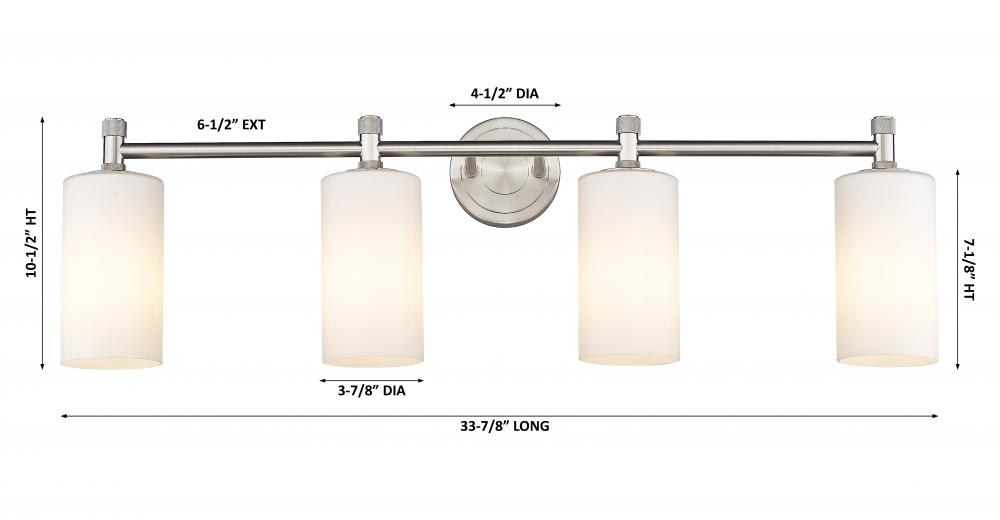 Crown Point - 4 Light - 34 inch - Satin Nickel - White Shade - Bath Vanity Light