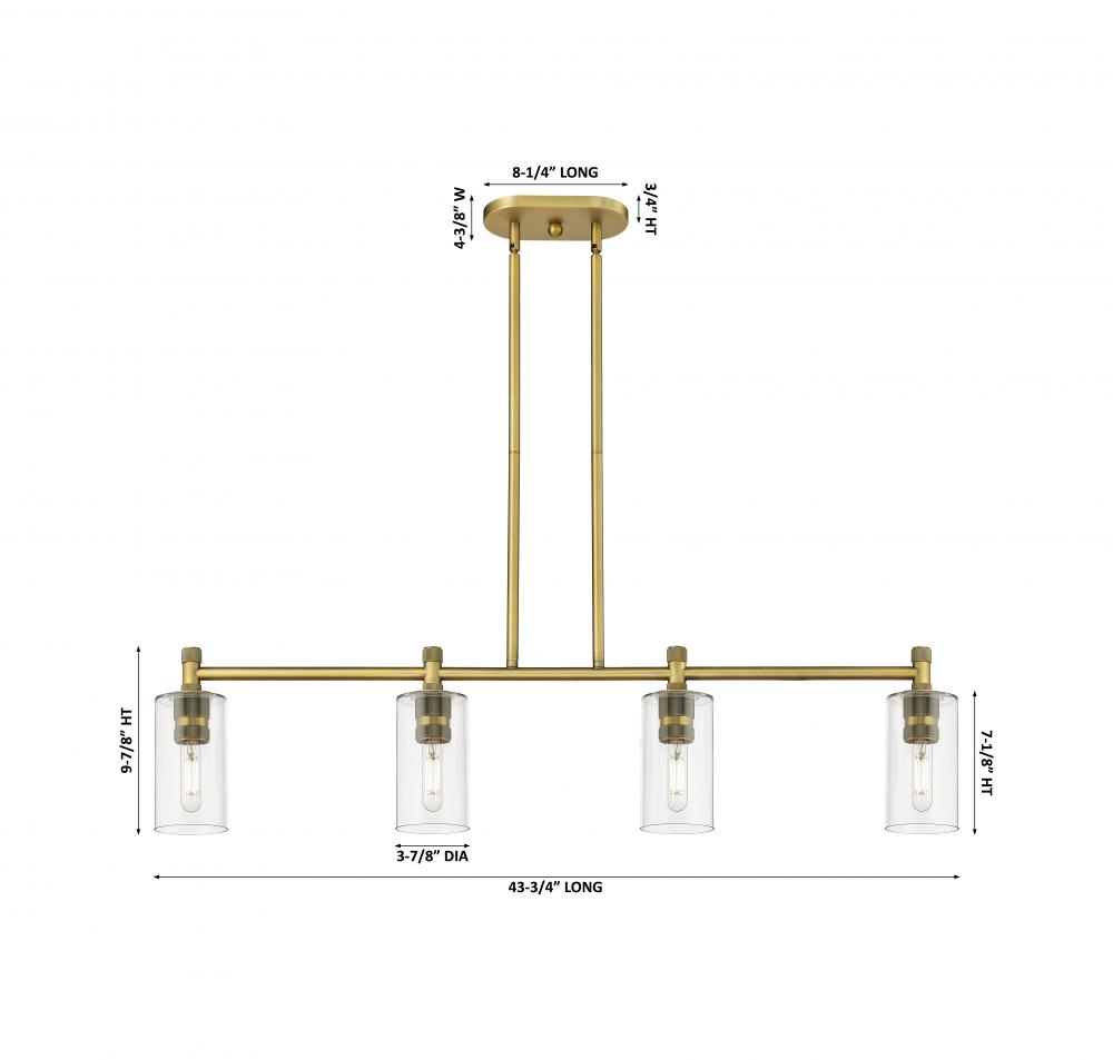 Crown Point - 4 Light - 44 inch - Brushed Brass - Clear Shade - Island Light