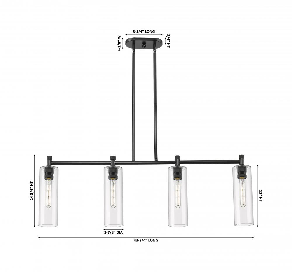 Crown Point - 4 Light - 44 inch - Matte Black - Clear Shade - Island Light