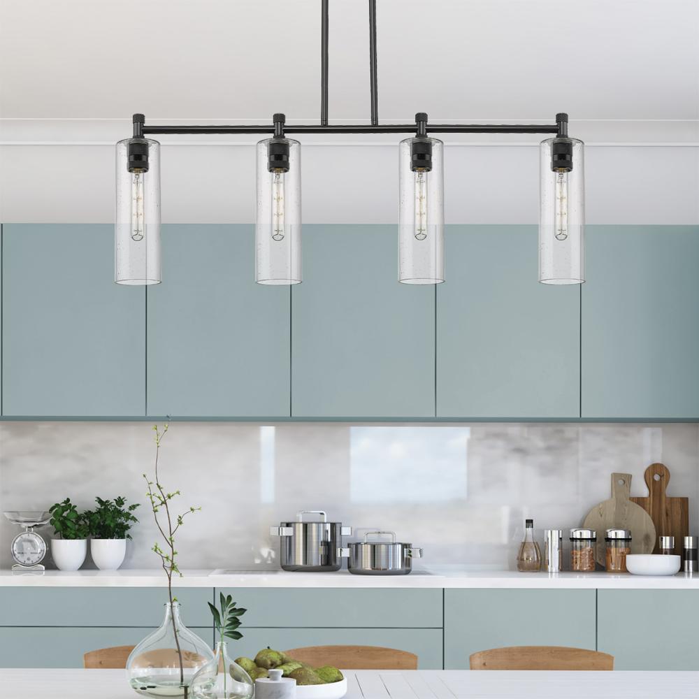 Crown Point - 4 Light - 44 inch - Matte Black - Seedy Shade - Island Light